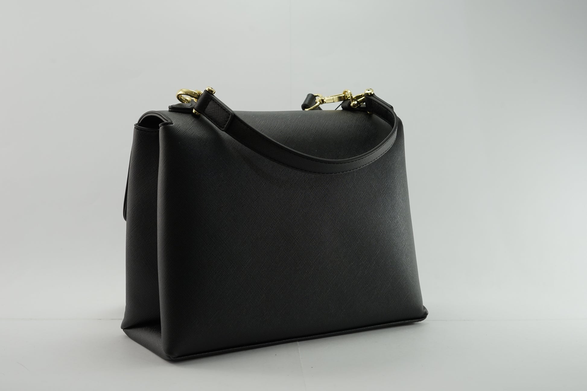 - Alça de ombro em corrente em pele sintética ajustável e removível.